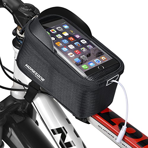 Morezone Borsa per telaio da bicicletta, con fibbia e due scomparti, adatta per cellulare con dimensioni inferiori a 5,5" (139 cm), per manubrio della bicicletta