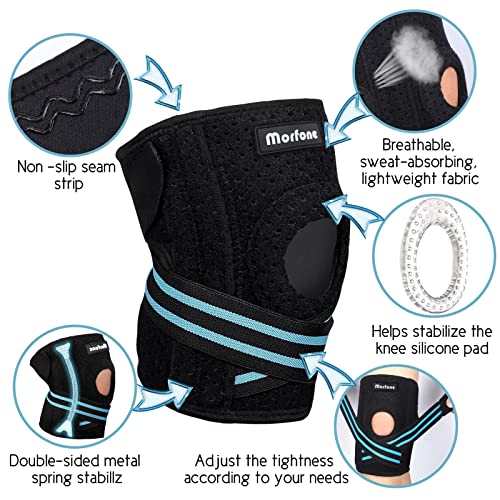 Morfone Ginocchiera con stabilizzatori laterali e custodia protettiva, ginocchiera per rottura del menisco, ginocchiera con fascia di compressione regolabile, adatta per uomini e donne (M)
