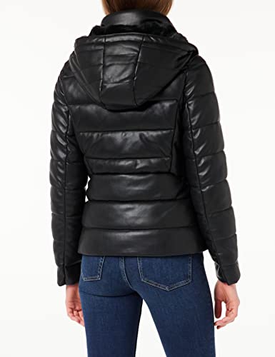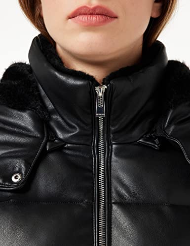 Morgan Piumino in Finta Pelle con Cappuccio 212-Gkely Giubbotto in Ecopelle, Nero, 44 Donna
