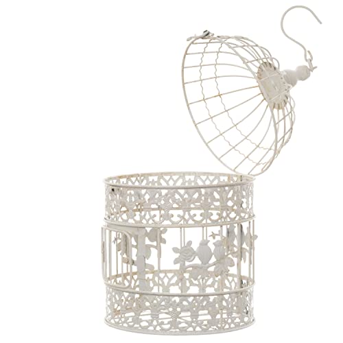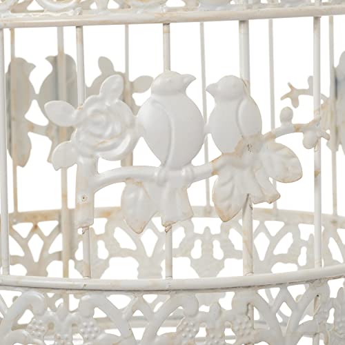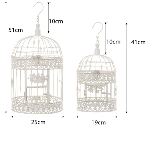 Moritz Gabbia decorativa per uccelli, bianca, rotonda, set da 2 pezzi, decorata con uccelli, gabbia decorativa per fiori, candele, decorazione da appendere