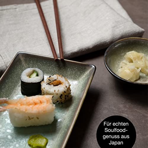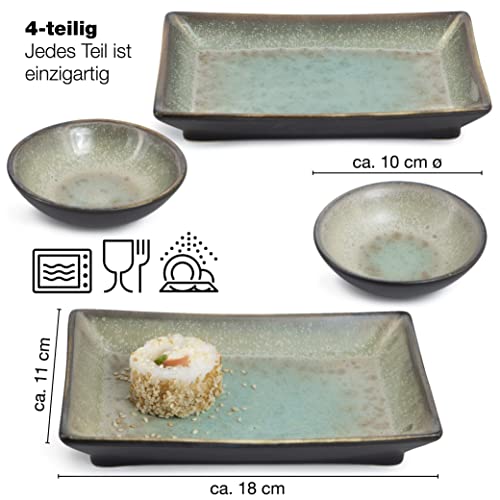 Moritz & Moritz Set di stoviglie per sushi per 2 persone, set da portata per sushi con 2 piatti per sushi e 2 ciotole per salse - blu e verde con smalto reattivo