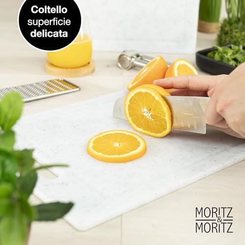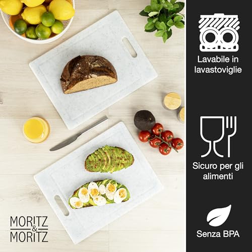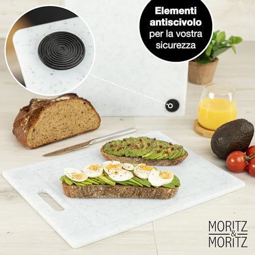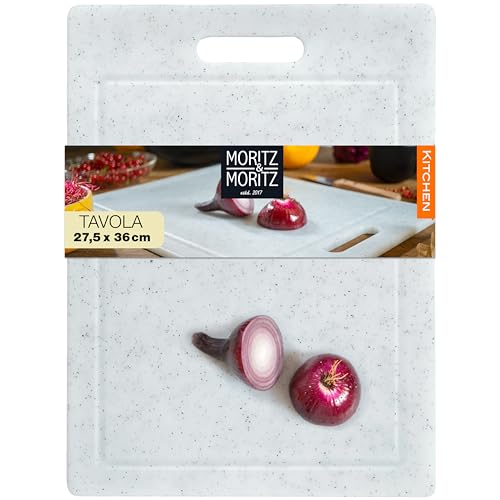 Moritz & Moritz Tagliere Plastica Grande 36 x 27,5 cm - Taglieri da Cucina con Effetto Granito - Tagliere Bianco Cucina con Piedini Antiscivolo, Apertura con Maniglia e Scanalature per Succo