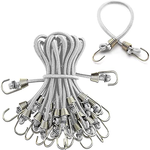 MOROBOR Corda elastica bianca in gomma, 10 mini corde elastiche con ganci in metallo, elastici in gomma con ganci per bici, portapacchi, tende e carrelli a mano, ecc