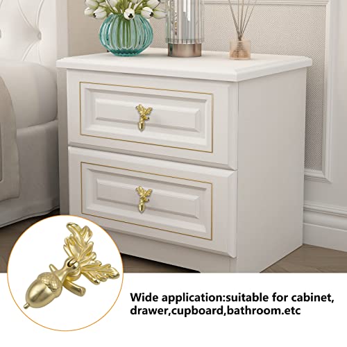 MOROBOR Pomelli per cassetti con piedistallo a foglia, 4 pomelli in lega di zinco anticata, con ghianda e scoiattolo, con ciondolo a goccia, maniglia a foro singolo, per armadio armadio (oro opaco)
