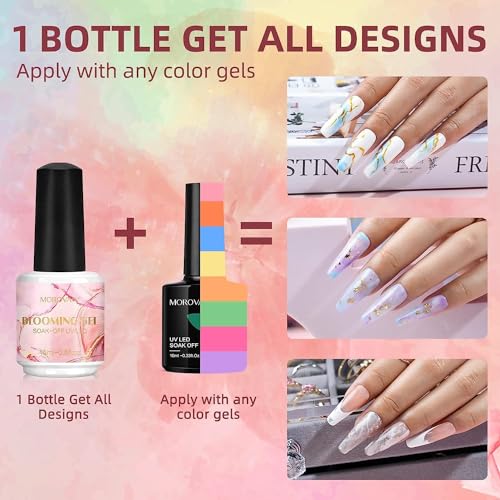 Morovan Blooming Gel kit unghie - Soak off 15ml UV LED Clear uv gel unghie for spreading effect marble uv gel nail polish Suitable for women nails DIY design uv nail polish set with nail brush