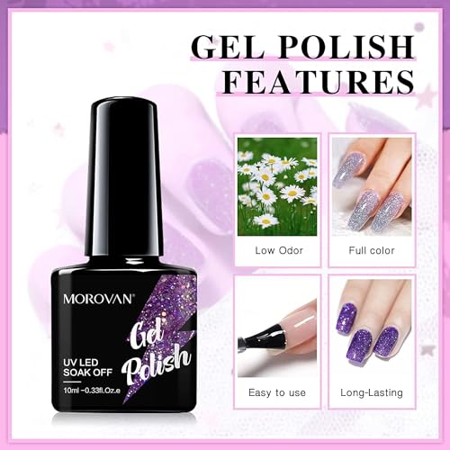 Morovan Smalto Semipermanente Unghie - 6 Colori Semipermanente Glitter 10ml Gel Colorati per Unghie Brillante Smalti Gel Per Unghie UV LED Lampad per Principianti Home DIY Manicure Decorazione
