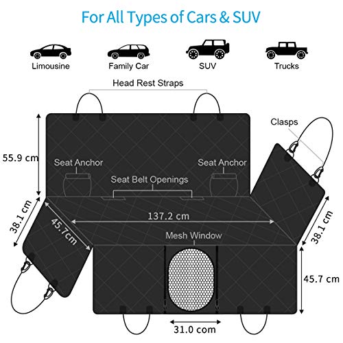Morpilot Coprisedile per Cani, Griglia Coprisedile, Supporto Antiscivolo Impermeabile con Ancore di Seduta e Cinture di Sicurezza Extra a Due posti (58 X 54 Pollici)