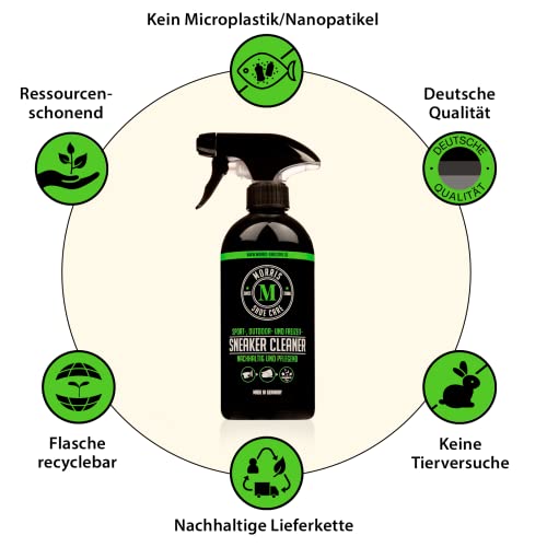 Morris Fenderbaum Set di pulizia per scarpe da ginnastica con panno in microfibra e gomma per cancellare lo sporco, 1 detergente per sneaker, 1 panno in microfibra da 500 ml, 2 spugnette da cancellare