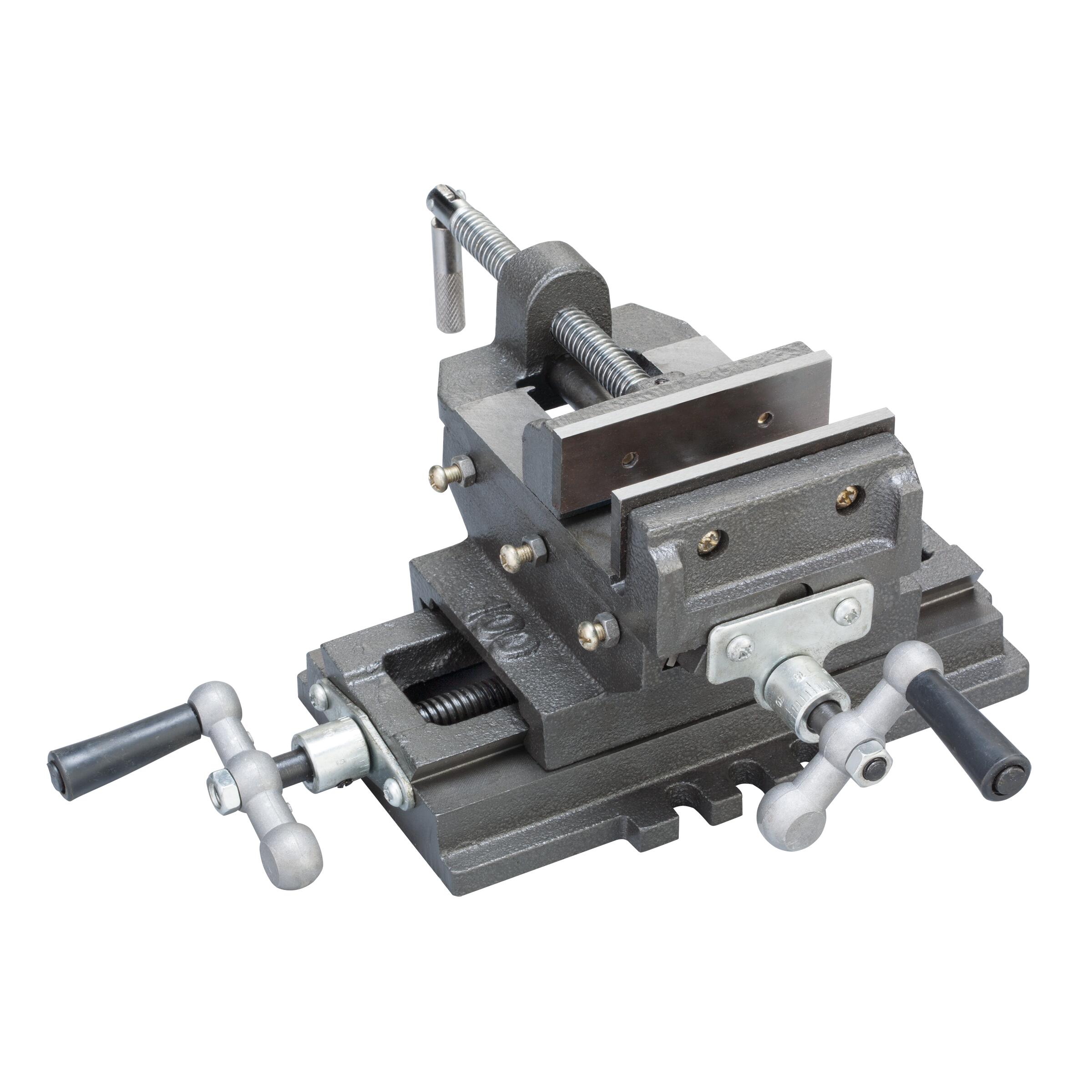 Struttura robusta in ghisa resistente. Corsa longitudinale 150 mm Corsa trasversale 120 mm. Questa morsa è realizzata in ghisa resistente per elevata durezza e durata, pertanto ha una lunga durata di vita ed una buona resistenza alla corrosione. È disegnata per potere operare con precisione in due direzioni diversi, lateralmente e longitudinalmente. È lo strumento ideale per la foratura e la fresatura e rappresenta un pratico accessorio complementare per alesatrici e fresatrici. Il dispositivo è destinato per operatori nel settore dell´automotive e in officina, ma anche per il fai-da-te. Questa morsa girevole a croce viene consegnata già assemblata ad eccezione del relativo supporto.. Apertura 110 mm. Ganasce 125 x 40 mm