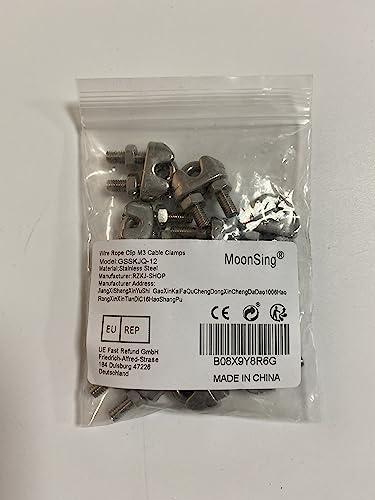 Morsetti per Cavo Acciaio Inox, 12 Pezzi M3 Morsetti Serracavo Morsetto per Fune Metallica a Forma di U Clip per Cavi, Fermacavo per Cavo Tenda da Sole Stendibiancheria