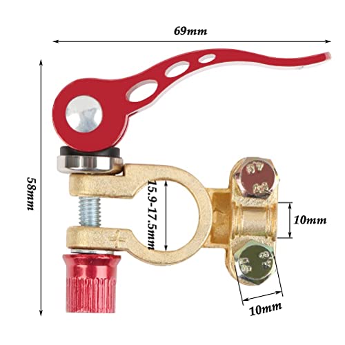 ✔️【Dimensioni】 2 pezzi di morsetti per batteria Divisi in positivo (rosso) 17,5-19,1 mm, negativo (nero) 15,9-17,5 mm.Le dimensioni dell'aspetto sono 65 * 55 mm.