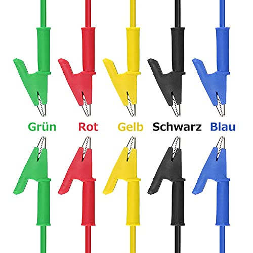 5PZ Morsetti a Coccodrillo Puntali Tester con Isolatori Clip, Cavo di Rame Flessibile per Esperimento di Test Elettrici 1000V 15A 1m