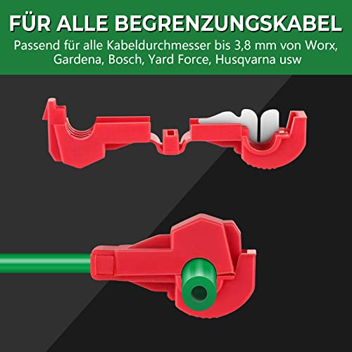 Compatibilità universale: il morsetto di collegamento del cavo di delimitazione è compatibile con tutti i modelli dei marchi più diffusi come Gardena, Husqvarna, Worx, Bosch,Yard Force.