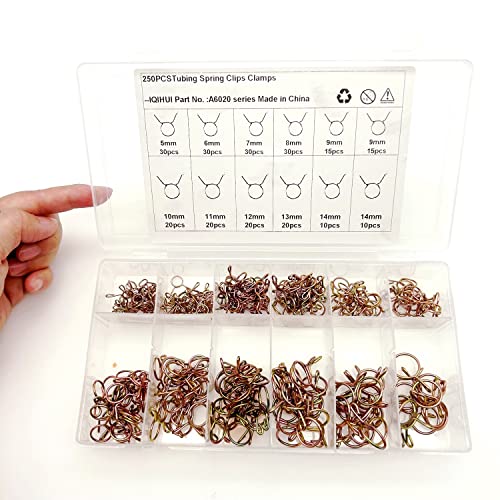 JZK Set di 250 morsetti per tubo flessibile a molla, tubo del carburante, kit di fissaggio per fascette stringitubo, 5 mm, 6 mm, 7 mm, 8 mm, 9 mm, 10 mm, 11 mm, 12 mm, 13 mm, 14 mm