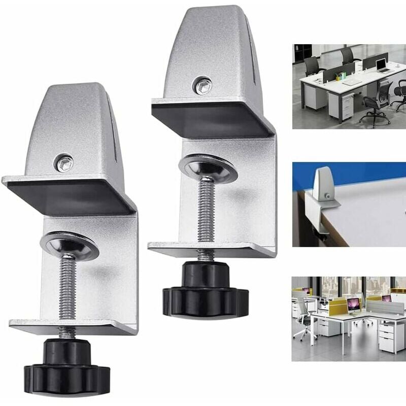 Robusto materiale in lega di alluminio: la clip di separazione dello schermo è realizzata in materiale in lega di alluminio di alta qualità, che ha una buona resistenza alla ruggine, al calore, alla pressione e alla corrosione, nonché un'elevata resistenza. Il est donc très résistant et a une longue durée de vie. Tampon en caoutchouc souple: il y a des coussinets en caoutchouc souple sur les deux côtés intérieurs de la partie de serrage du support de serrage du diviseur de ufficio. Non solo può proteggere il pannello da urti e abrasioni, ma anche bloccare la partizione più saldamente per evitare che scivoli. Design senza forature: rispetto alla maggior parte dei morsetti per vetro regolabili, questo morsetto per divisori viene fornito con viti regolabili per la regolazione, quindi non è necessario praticare fori durante l'installazione. Non solo semplifica le fasi di installazione, ma previene anche danni al desktop, il che è molto comodo e pratico. Clip di separazione dello schermo