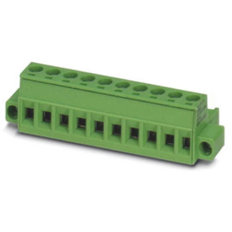 Dettagli tecnici Caratteristiche del connettore con gabbia Collegamento (Componenti) A vite Colore Verde Contenuto 1 pz. Corrente nominale 12 A Diametro foro montaggio M3 Dimensione del prodotto, larghezza 35.41 mm Dimensione del prodotto, lunghezza 18.3 mm Dimensioni (L x L x A) 18.3 x 35.41 x 15 mm Dimensioni prodotto Altezza 15 mm Famiglia colore Verde Materiale di contatto Lega di Cu, stagnata Numero di righe 1 Sezione (min.) 0.2 mm² Sezione Max 2.5 mm² Struttura connettore Presa Tensione nom. 176 V Tipo prodotto Morsettiera per cavo Totale poli 5 Numero di collegamenti: 5 Sezione trasversale nominale: 2.5 mm². Gruppo materiale isolante: I SISTEMA A INNESTO: CLASSIC COMBICON (EX) Bloccaggio: Flangia a vite Numero di potenziali: 5 Altezza d'installazione (altezza senza pin saldato): 15 mm Connettori per PCB Il principio di connessione noto permette un utilizzo in tutto il mondo. Basso riscaldamento grazie alla massima forza di contatto. Flangia avvitabile per la massima stabilità