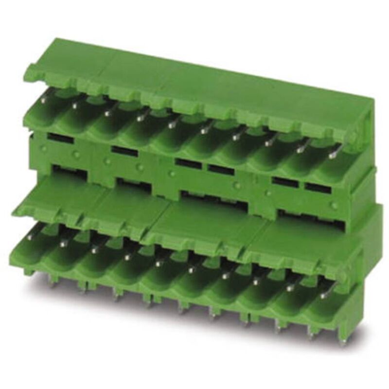 Dettagli tecnici Collegamento (Componenti) Da CS Colore Verde Contenuto 1 pz. Corrente nominale 10 A Dimensione del prodotto, larghezza 22.87 mm Dimensione del prodotto, lunghezza 20.1 mm Dimensioni (L x L x A) 20.1 x 22.87 x 31.29 mm Dimensioni prodotto Altezza 31.29 mm Famiglia colore Verde Materiale di contatto Lega di Cu, stagnata Numero di righe 2 Struttura connettore Spina Temperatura (max.) +100 °C Tensione nom. 320 V Tipo prodotto Morsettiera per cavo Totale poli 4 Numero di collegamenti: 8 Sezione trasversale nominale: 2.5 mm². Dimensioni punta: 1 x 1 mm Gruppo materiale isolante: IIIa Tensione d'urto nominale (III/3): 4 kV Sistema a innesto: Classic COMBICON Bloccaggio: Senza Numero di potenziali: 8 Altezza di montaggio (altezza senza pin saldato): 27,49 mm Lunghezza pin: 3,8 mm Temperatura ambiente (montaggio): -5 °C... 100 °C Forza di inserimento per polo circa 8 N Forza di trazione per polo circa 6 N Cicli di accoppiamento: 25 Frequenza: Da 10 a 150 - 10 Hz Barra di base