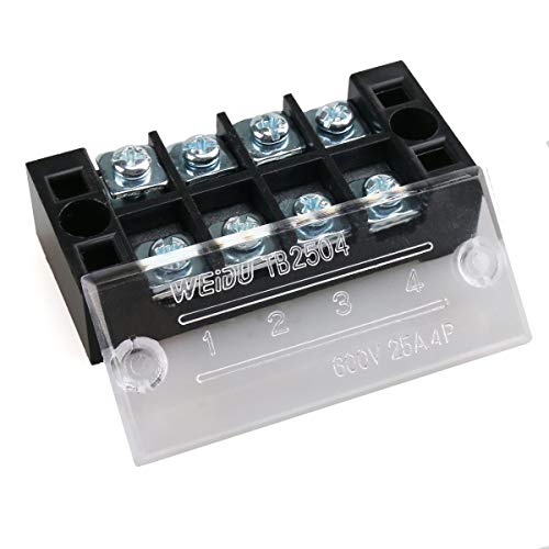 Morsettiera a 4 posizioni a doppia fila di strisce rivestite di vite 600 V 25 A con 400 V 25 A 4 posizioni pre-isolate, 10 pezzi, colore: rosso/nero