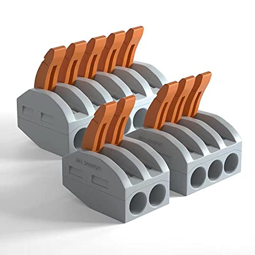 【Ampia gamma di applicazioni】 connettore fili elettrici è disponibile in 2 porte / 3 porte / 5 porte per conduttori solidi e a trefoli da 0,08 a 2,5 mm² e conduttori flessibili da 0,08 a 4 mm². Ideale per sistemi di illuminazione, cablaggio di edifici, sistemi di comunicazione e sistemi di allarme di sicurezza.