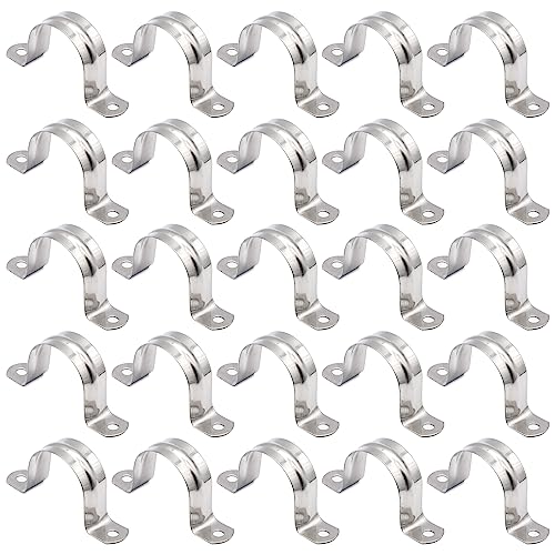 Morsetto per Tubi in Acciaio Inossidabile 304, 20 Pezzi Morsetti per Tubi a U, 25mm Morsetti per Cavi Metallo a due fori Fascette Stringitubo per Tubi del Gas Fissaggio di tubi e cavi dell'acqua (M25)
