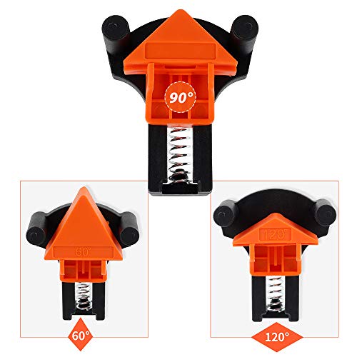FACILE DA USARE: abbiamo un morsetto ad morsetto retto di 60 gradi e 90 gradi e 120 gradi. Una mano può azionare 4 set di attrezzature per la lavorazione del legno, una mano può aprire il morsetto ad angolo retto el'altra può fissare e posizionare liberamente il pezzo, risparmiando così tempo e riducendo il carico di lavoro
