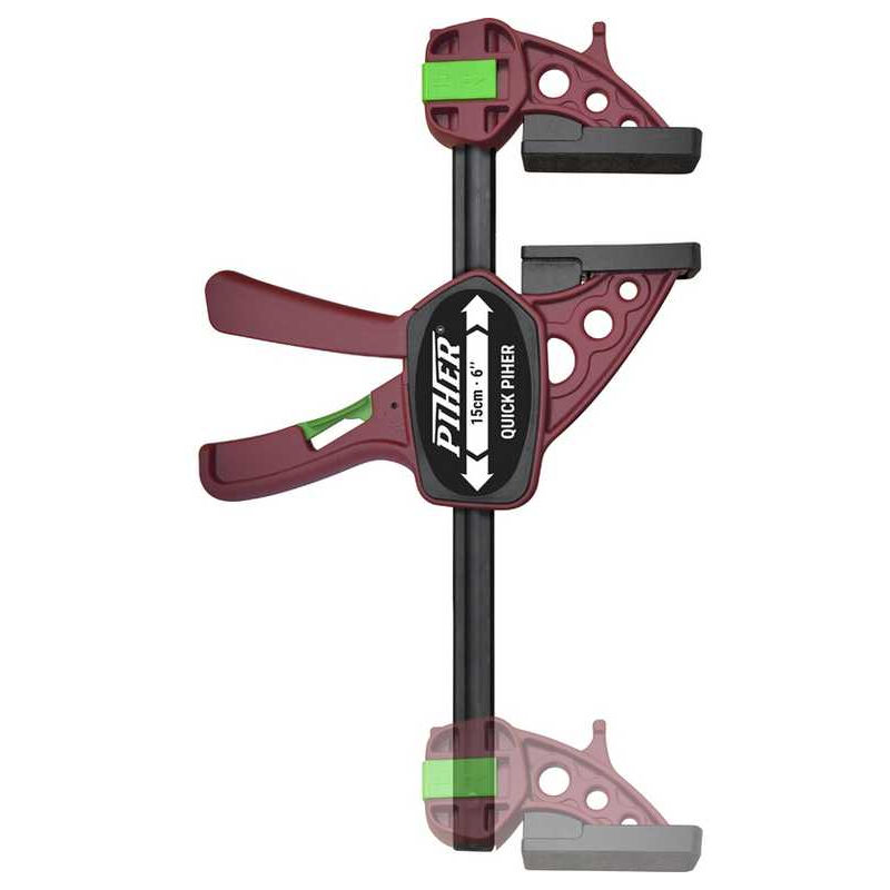 Dettagli: Extra quick - morsetto rapido disegnato per lavorare con una sola mano. Capacità di pressione: 150 kg. Possibilità di assemblare o separare parti (morsetto reversibile). Manico ergonomico. Sblocco istantaneo del grilletto. Pattino più lungo che offre una maggiore superficie di serraggio.