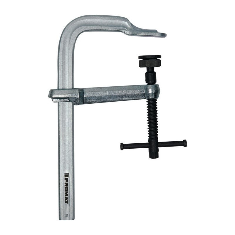 Morsetto fisso in profilato d'acciaio trafilato a freddo - morsetto scorrevole forgiato a caldo - temprato - zincato - mandrino con filettatura trapezoidale e SW 17 all'estremità del mandrino - piastra di pressione mobile (fino a 35°) e maniglia tommy per il serraggio pesante di pezzi in costruzioni in acciaio - fabbri - incollaggio del legno - ingegneria meccanica ecc. - per forze di serraggio di 12 kN con larghezza di serraggio di 150 mm Altre caratteristiche tecniche:- Peso: 2,8 kg Altre caratteristiche tecniche:- Peso: 2,8kg