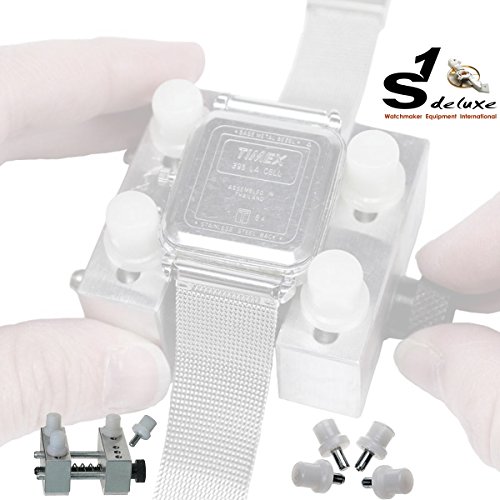 Supporto per cassa S1 Deluxe ELITE in metallo pieno con 4 ganasce rotonde in plastica con 3 diverse possibilità di inserimento e meccanismo di regolazione con molla a pressione, in modo da poter adattare il supporto della cassa a quasi tutti gli orologi.