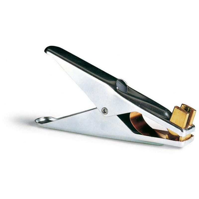 Per il ritorno di corrente. Ganasce in acciaio trattato antiossidazione, con derivazione fissa in nastro di rame in grado di portare la corrente assegnata.