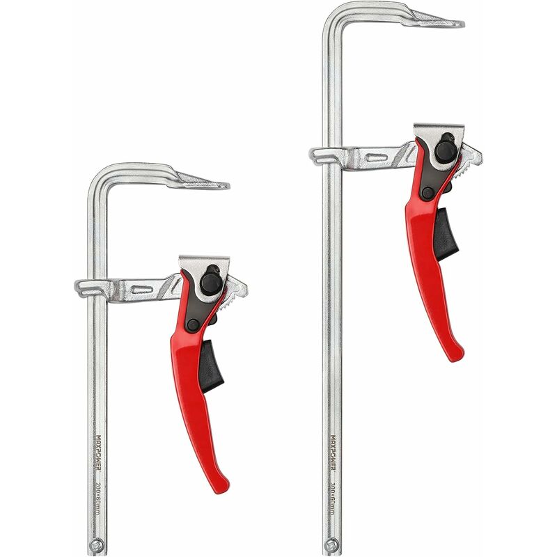 Specifiche - Questo morsetto include la capacità di apertura nelle dimensioni di 200 mm e 300 mm. Profondità fino a 60 mm. Lo spessore delle guide è di 13 x 6,5 mm. 【Robusto e durevole】Il morsetto rapido è realizzato in acciaio al cromo vanadio, che è durevole, non facile da danneggiare e non si deforma quando si bloccano oggetti pesanti, e il carico massimo di serraggio è di 180 kg/400 LBS. 【Facile da usare】La sua velocità di pressione e rilascio è 5 volte più veloce rispetto ai morsetti tradizionali. Ciò è dovuto alla potenza della leva utilizzata. Quando stringi qualcosa, una piccola forza può raggiungere una grande forza di serraggio. 【Dispositivo a cricchetto】 Il sistema a cricchetto è stato aggiunto in modo speciale. Rispetto al morsetto generale, può esercitare la massima forza di serraggio in modo più efficace, il serraggio è preciso, non si allenterà durante l'uso, il serraggio è saldo e non ci saranno vibrazioni, permettendoti di usarlo con sicurezza. -risparmio. adatto per