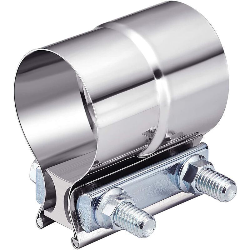 Dimensioni: unisce un tubo con diametro esterno da 2,25 a un tubo con diametro interno da 2,25, larghezza della cinghia: 2,94 pollici/74,82 mm. Applicazione: Il morsetto per giunti sovrapposti è un modo semplice ed efficace per collegare i componenti del sistema di scarico come tubi, marmitte, catalizzatori ecc. Vantaggio: Nessun disegno di saldatura, facile da installare o rimuovere. Materiale: Cinturino in acciaio inox 304, bullone e dado M10 zincati, guarnizione in acciaio, I-block in lega di alluminio. Caratteristica: I morsetti a nastro rendono la forza di 360 uniformemente distribuita, forniscono una tenuta e prevengono la deformazione del materiale. Coppia: 63 Nm.
