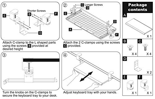 Morsetto sulla scrivania, Scorrevole Porta Tastiera, 70 cm l x 30,5 cm P Surface, 83.8 cm W, con Morsetti