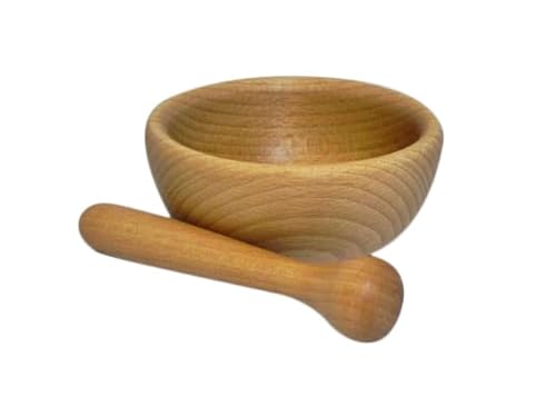 Gift Home - Mortaio e pestello in legno di faggio per tritare erbe e spezie, M08