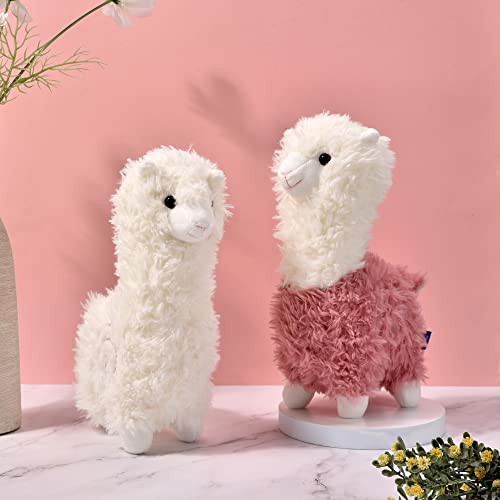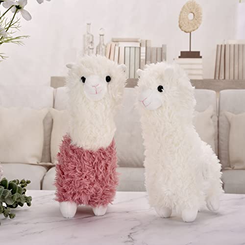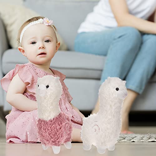 Morwealth 2pcs 11inch Alpaca peluche, simpatico peluche (Small, Bianco e rosa)