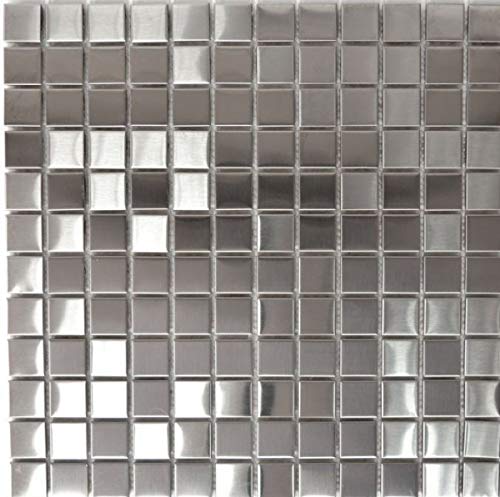 MOS129-23D_f - Pannello posteriore a mosaico, in acciaio inox e acciaio spazzolato, colore: argento e argento