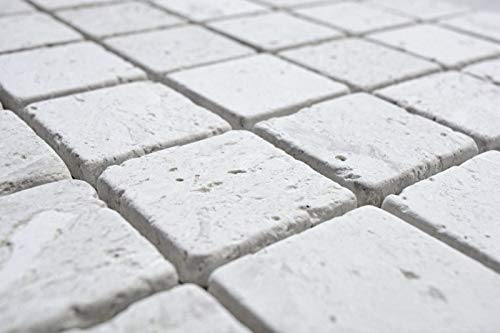 MOS29-49048 - Piastrelle a mosaico, pietra calcarea naturale, colore: Bianco