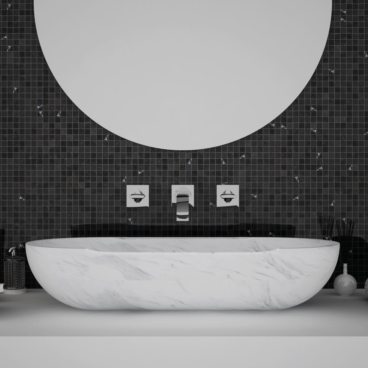 In marmo. Ideale per posa a parete in ambienti interni alla casa, ma ottimo anche per creare listelli e/o inserti decorativi perché facile da tagliare. Si adatta a tutte le superfici sia dritte che ondulate. La pietra e il marmo naturale sono materiali nobili e antichi, viengono sempre più impiegati nell'arredo del bagno, soprattutto nella sua moderna versione ricostruita.. Lo spessore 8 mm è particolarmente indicato per essere posato in abbinamento con la maggior parte delle piastrelle
