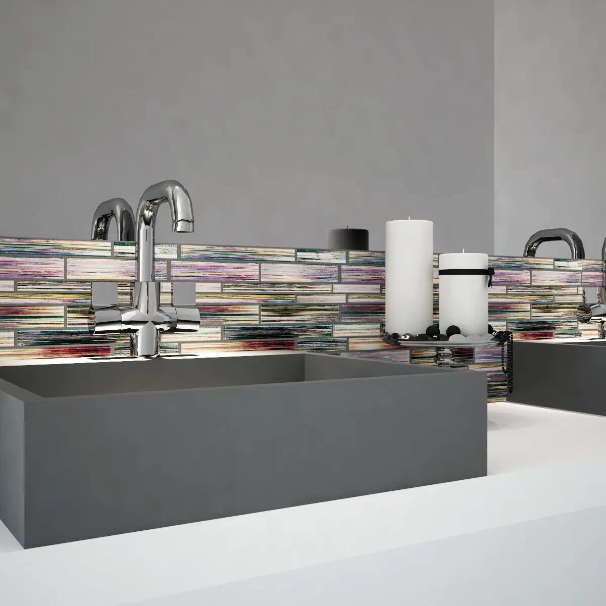 In vetro.. Ideale per posa a parete in ambienti interni alla casa, ma ottimo anche per creare listelli e/o inserti decorativi perché facile da tagliare. Si adatta a tutte le superfici sia dritte che ondulate. La finitura della superficie permette una facile pulizia. Particolarmente indicato per essere posato in abbinamento con la maggior parte delle piastrelle