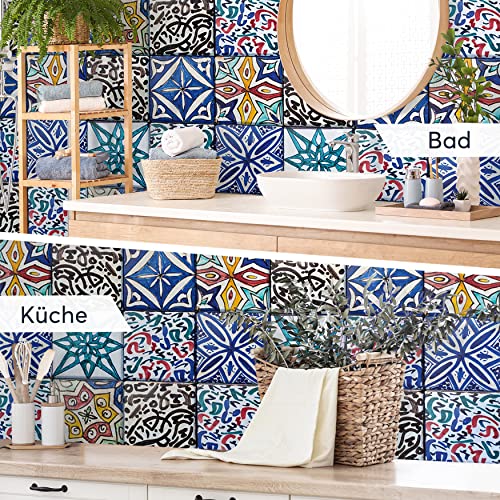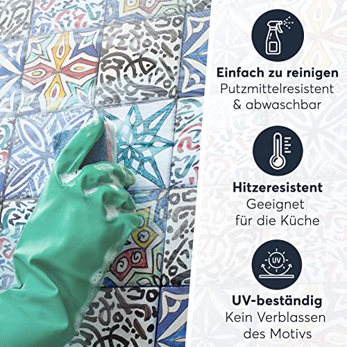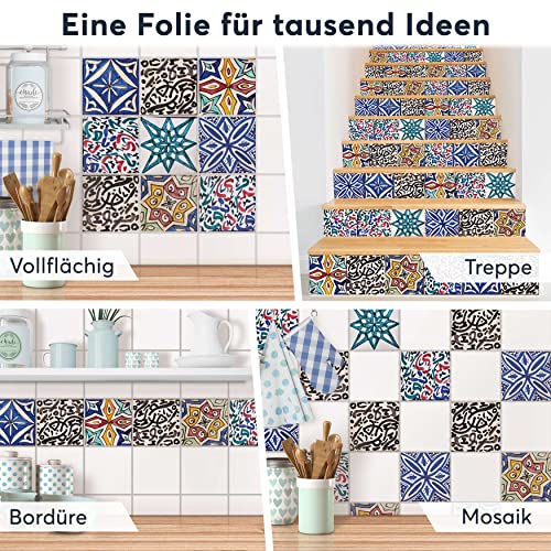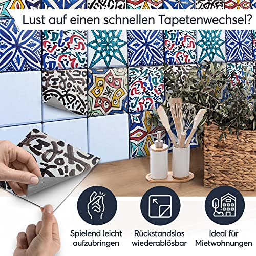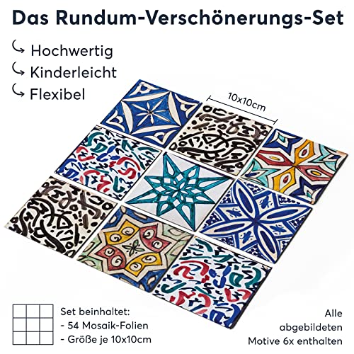 Mosaico Piastrelle autoadesive | Adesivo Design Piastrelle Adesivi per Interni - Adesivo Decorativo Pavimenti Bagno | 10x10 cm - Motivo Piastrelle spagnole - Set 54 Pezzi