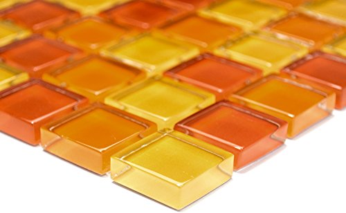 Mosaico di vetro quadrato Crystal mix giallo/arancione/rosso traslucido 3D, pietra mosaico, formato: 25 x 25 x 8 mm, dimensioni foglio: 327 x 302 mm, 1 foglio / opaco