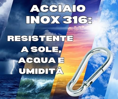 Moschettone Acciaio Inox 316 - Gancio Robusto e Resistente con Elevata Portata di Carico - Moschettone Grande 80mm -1 Pezzo