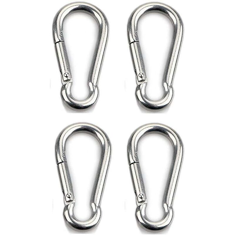 Spessore: 8 mm Lunghezza: 80 mm Carico massimo: fino a 200 kg Contenuto della confezione: 4 moschettoni da 8 mm. Moschettone resistente: realizzato in acciaio inossidabile 304, impermeabile, antiruggine e resistente. Consente un rapido collegamento/scollegamento di funi, catene e cinghie.