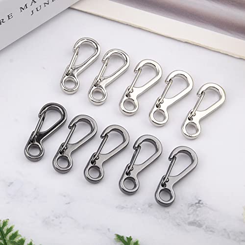 Contenuto della confezione: le mini clip a moschettone da 30 pezzi sono disponibili in due colori, ogni colore è composto da 15 pezzi. Sono realizzati in lega di zinco, elevata durezza, con superficie di placcatura che li rende più resistenti all'usura o ai graffi e alla ruggine.
