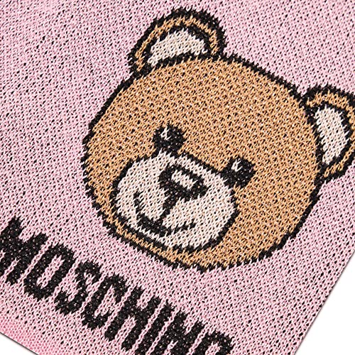 Moschino Berretto Lurex Rosa con Face Teddy Lato e Logo