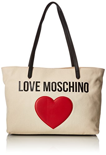 Love Moschino Borsa Canvas Naturale+pebble Pu Ner - Borse Tote Donna, Beige (Natural Canvas-black), 12x29x41 cm (B x H T)