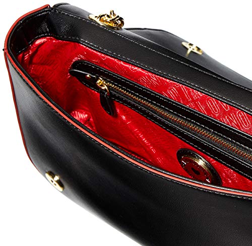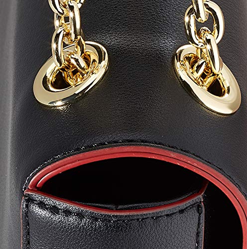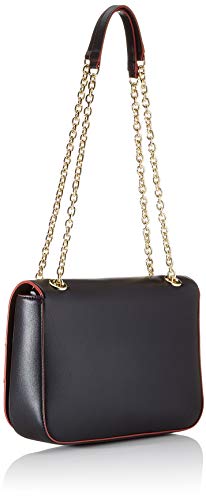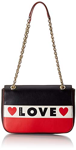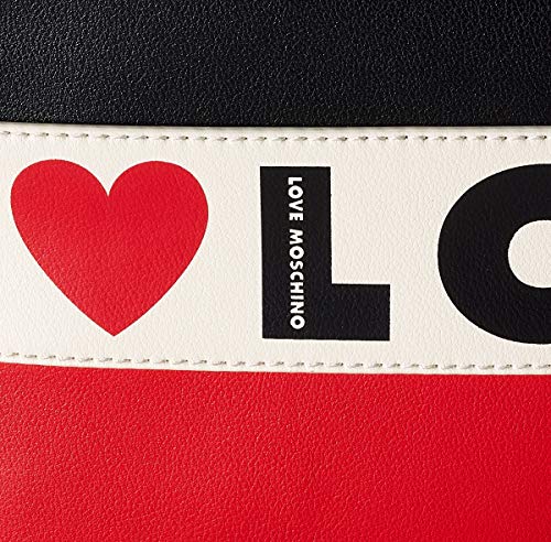 Love Moschino Borsa Small Grain finta pelle, Tracolla Donna, Nero (Nero/Bianco/Rosso), 19x28x6 cm (W x H x L)