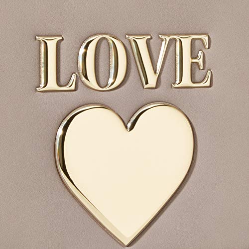 DECORAZIONI: iconica e lussuosa allo stesso tempo, la shopping bag è decorata con il logo Love Moschino e l'iconico cuore, simbolo del brand, imbottiti e laminati in oro chiaro.