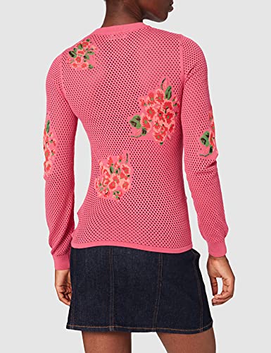 Love Moschino Fitted Pullover Long Sleeves, in Mesh Knit Stretch Viscose, 14 Gauge, with Intarsia Flowers. Maglione, F.Rosa/Fio.Ross, 50 Donna