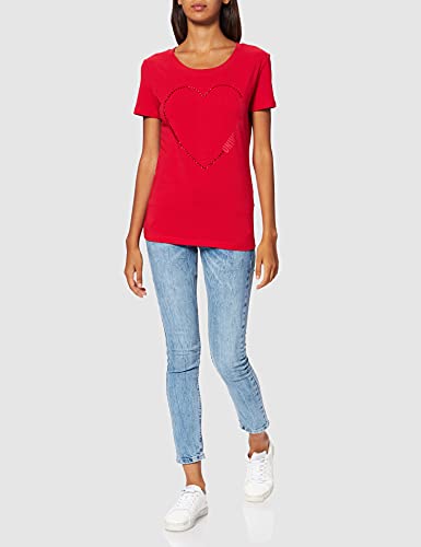 Love Moschino Fitted Short Sleeved t-Shirt Hue Rhinestone Heart with Shiny Print on Chest, Colore: Rosso, 46 Donna