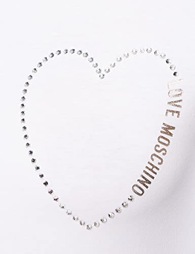 Love Moschino Fitted Long Sleeved t-Shirt with Matching Tone Rhinestone Heart And Shiny Print, Bianco, 46 Donna